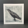 Front cover from a collagraph 'Fiacc the Raven' by Clare Keys